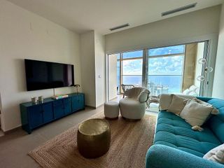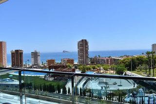 Se ofrece para los meses de octubre a junio. Estancia minima 3 meses. Apartamento de reciente construcción se encuentra en una espectacular urbanización a un paso del mar, en segunda linea de playa Poniente de Benidorm. Nuevo apartamento de diseño moderno, con grandes ventanas y altos techos crean la máxima sensación de espacio, llenando la casa de luz natural y le permite disfrutar de las mejores vistas al infinito mar desde todas las estancias de la casa. El apartamento totalmente amueblado, equipado y listo para entrar, consiste en dos dormitorios dobles, dos baños, armarios empotrados, salón comedor con modernos muebles. El salón y la habitacional principal tienen salida a la amplia terraza con impresionantes vistas al mar con cómodos muebles, para disfrutar de sus comidas, cenas y apertivos. Cocina americana equipada con todos los electrodomésticos de las mejores marcas y una despensa. Todas las modernas tecnologías y instalaciones están presentes: WI-Fi, sistema de aerotermia (frío/calor), suelos radiantes en los baños, portero automático. La propiedad cuenta con plaza de garaje numerada y dos amplios trasteros incluidos en el precio. El apartamento se encuentra en una urbanización privada "Sunset Drive", con todos los servicios: dos piscinas para adultos (una de ella climatizada), piscina de niños, jacuzzis, solárium y tumbonas, exuberante jardín con cuidados árboles y plantas con fuentes y iluminación nocturna, pistas de paddle/tennis, futbol, zonas de lectura y juego de niños, gimnasio, sauna, sala de trabajo, cine, cafetería y el restaurante, servicio de consejería, vigilancia 24h y etc. , Este impresionante complejo se encuentra a un paso de una de las mejores playas de Europa, al lado de todos los servicios, comercios, tiendas, restauratnes, cafeterias, etc y a 1 km del centro de Benidorm. [IW].