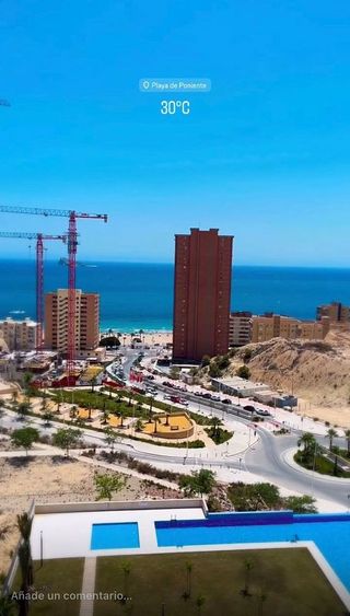 Alquiler temporadas desde noviembre hasta julio. Estancia minima 3 meses. Apartamento de reciente construcción se encuentra en una espectacular urbanización a un paso del mar, en segunda linea de playa Poniente de Benidorm. Nuevo apartamento de diseño moderno, con grandes ventanas y altos techos crean la máxima sensación de espacio, llenando la casa de luz natural y le permite disfrutar de las mejores vistas al infinito mar desde todas las estancias de la casa. El apartamento totalmente amueblado, equipado y listo para entrar, consiste en dos dormitorios dobles, dos baños, armarios empotrados, salón comedor con modernos muebles. El salón y la habilitación principal tienen salida a la amplia terraza con impresionantes vistas al mar con cómodos muebles, para disfrutar de sus comidas, cenas y aperitivos. Cocina americana equipada con todos los electrodomésticos de las mejores marcas y una despensa. Todas las modernas tecnologías y instalaciones están presentes: WI-Fi, sistema de aerotermia (frío/calor), suelos radiantes en los baños, portero automático. La propiedad cuenta con plaza de garaje numerada y dos amplios trasteros incluidos en el precio. El apartamento se encuentra en una urbanización privada "Sunset Drive", con todos los servicios: dos piscinas para adultos (una de ella climatizada), piscina de niños, jacuzzis, solárium y tumbonas, exuberante jardín con cuidados árboles y plantas con fuentes y iluminación nocturna, pistas de paddle/tennis, fútbol, zonas de lectura y juego de niños, gimnasio, sauna, sala de trabajo, cine, cafetería y el restaurante, servicio de consejería, vigilancia 24h y etc. , Este impresionante complejo se encuentra a un paso de una de las mejores playas de Europa, al lado de todos los servicios, comercios, tiendas, restaurantes, cafeterías, etc y a 1 km del centro de Benidorm. El precio indicado es por temporada larga desde Septiembre, resto de meses por favor consultar. de recreo para niños y adultos, vigilancia 24 h, portero autom