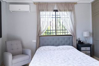 Exquisita casa adosada con piscina privada, garaje cubierto y apartamento independiente en planta baja. Rodeada de un entorno tranquilo y acogedor, con fácil acceso al transporte público. Esta casa combina privacidad, comodidad y diseño de calidad, con una distribución versátil que se adapta a las necesidades de la familia. Se distribuye en dos plantas completamente exteriores con 5 dormitorios, dos baños en suite, algunas terrazas que maximizan la luz natural y la sensación de amplitud. Según Catastro: 311 m2 de parcela y 240 m2 de superficie construida. DISTRIBUCIÓN: Planta baja: (130,18m2 construidos) cuenta con un amplio salón luminoso, con ventanales grandes, chimenea y con salida a terraza y piscina privada; una gran cocina-office reformada y un aseo adicional actualmente utilizado como lavadero, con salida directa a la terraza trasera y a la piscina privada. Además, incluye una zona independiente toda exterior, con dormitorio, baño en suite y salita que funciona como apartamento independiente, con acceso propio, ideal para invitados, familiares o incluso para vivir de manera autónoma. Esta distribución ofrece flexibilidad y privacidad, haciendo que la planta baja se convierta en un espacio versátil y acogedor. Planta superior: (101,23 m2 construidos) se encuentran cuatro amplísimos dormitorios más, todos exteriores, uno de ellos con baño en suite, y otro en pasillo, así como terraza privada con vistas despejadas a un entorno sereno. Todas las estancias cuentan con climatización. CALIDADES: suelo de mármol, chimenea en el salón, cierres con doble acristalamiento, oscilobatientes y de alta gama marca kommerling, con mosquiteras, garantizando confort, aislamiento y tranquilidad. Aire acondicionado por conductos en toda la casa (maquina y fancoil de 2025) Rejas nuevas fabricadas en hierro forjado machihembradas. Suelo rectificado en barro de Vélez. IBI: 330€ anuales bonificado al 50% durante 10 años por instalación de placas solares. Calefacción por caldera