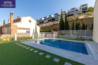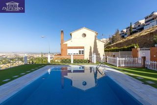 Bienvenido a esta formidable casa unifamiliar situada en la ladera del Serrallo, en el Camino de Caicena con unas excelentes vistas de Granada y Sierra Nevada, a unos 15 minutos a pie de la Avenida de Cervantes y a 5 minutos del Centro Comercial Serrallo Plaza. Integrada en una comunidad de sólo 9 vecinos que comparten un amplia piscina comunitaria de increíbles vistas. La casa está en la esquina de la urbanización con vistas directas a la piscina. La vivienda se organiza en la siguiente distribución: -En planta baja nos encontramos con hall de entrada, amplio salón con salida a una gran terraza y ofrece unas magníficas vistas, cocina independiente con lavadero, un amplio dormitorio con armario empotrado y un cuarto de baño de cortesía. La terraza cuenta con una salida lateral directa con derecho de paso a la parte ajardinada de la urbanización. -En primera planta hay tres dormitorios todos exteriores, el principal en suite con un cuarto de baño incorporado. Los otros dos dormitorios con armarios empotrados y salida a una terraza con estupendas vistas, existe otro cuarto de baño en la misma planta. -En la segunda planta hay una gran habitación abuhardillada diáfana, con ventanas exteriores, aire acondicionado independiente, armarios empotrados y un lavabo. Se utilizaba como estudio de pintura por su gran luminosidad. -En planta semisótano, un gran salón chimenea, cuarto de baño, trastero, despensa, y una amplia plaza de garaje con altillo para almacenaje tanto de leña como de enseres. Esta zona es ideal para reuniones con amigos dado su acceso independiente por el garage a nivel de calle. Otras calidades son: calefacción y agua caliente sanitaria por caldera individual por gas natural, aire acondicionado en toda la vivienda por conductos, ventanas de aluminio con doble acristalamiento, armarios empotrados terminados, puertas interiores lacadas en blanco, suelos en tarima flotante y pintura lisa. Es una oportunidad fantástica para vivir en un lugar tranqu