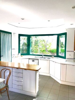 Colomba Boutique Inmobiliaria alquila, Chalet adosado con jardín privado y una fantástica piscina (en la azotea de la casa). Construido en el año 1998, con las mejores calidades. Distribución: PLANTA PRINCIPAL: Hall de entrada con aseo de invitados, cocina equipada con office, amplio salón -comedor de doble altura (con techos de 5 m) con salida directa al jardin con porche de 40 m². Garaje con espacio para 3 coches. 1ª PLANTA: Dormitorio principal de gran tamaño (60 m2) en suite con bañera de hidromasaje. A destacar la cantidad de armarios con excelentes acabados. En esta planta hay otros 2 Dormitorios más con baño en suite. 2ª PLANTA: Habitación espaciosa perfecta para usar como gimnasio. Otras dos habitaciones más para servicio y/o visitas con baño cada una en suite. 3ª PLANTA: Piscina con porche, solárium y césped artificial. SOTANO: Bodega y trastero. La casa además tiene Ascensor. En perfecto estado: se acaba de acuchillar el parqué, estores nuevos en toda la casa y recién pintado. Dobles ventanas climalit, Suelo de marmol y parqué. Alarma, Aire Acondicionado y Calefacción con gasoil. Excelente ubicación, a 10 minutos andando del Liceo Francés, Colegios Británicos: Numont, Hastings, etc. Centro Comercial a 10 minutos, Campo Golf. Muy buena conexión para el Aeropuerto y el centro de Madrid. Fácil acceso a la A2, M40, M11. Cerca del metro. Colomba Real Estate Agents immobiliers français Falamos português We speak English Visit nuestra web: www colomba es.