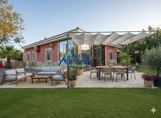 � Estupenda casa de una planta en el paraíso, lista para entrar a vivir Reformada hace seis años, esta magnífica vivienda combina la tranquilidad del campo con la comodidad de estar a tan solo 7 minutos del centro de Badajoz. Situada frente a Las Vaguadas, cuenta con parada de bus urbano en la entrada de la urbanización y un entorno natural único. ✨ Características principales Superficie de parcela: casi 2.000 m² Vivienda en una sola planta (solo dos escalones en toda la casa) 4 habitaciones, dos de ellas muy amplias, una con gran vestidor y baño en suite 2 baños completos, ambos con plato de ducha Sistema de aerotermia con suelo radiante y refrescante � Exterior y zonas de disfrute Jardín enorme con spa-jacuzzi exterior para 7 personas, con música, luces y agua climatizada Zona chill-out con barbacoa, perfecta para reuniones y fiestas Amplio huerto y área de árboles frutales: naranjos, limoneros, almendros, nogales, granados, higueras, vides y albaricoquero Dos gallineros y caseta de aperos � Otras ventajas Garaje con gran capacidad y altillo de almacenaje Urbanización tranquila, sin apenas vecinos, ideal para quienes buscan paz, naturaleza y espacio para animales, pero con todos los servicios de la ciudad muy cerca � Una vivienda única para quienes desean calidad de vida, naturaleza y comodidad en un solo lugar. "El precio indicado no incluye los gastos derivados de la compraventa (notaría, registro, impuestos) ni los honorarios de intermediación de la agencia inmobiliaria.