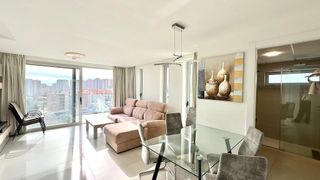 Alquiler de temporada en el nuevo edificio Torre Sakura, ubicado a 150 metros de la Playa de Poniente de Benidorm. Urbanización con piscina comunitaria y gimnasio. El apartamento cuenta con 2 dormitorios, 2 baños, amplio salón-comedor, cocina equipada y fantástica terraza con vistas al mar. El segundo dormitorio se puede convertir en un despacho para los que necesiten trabajar desde casa. Vivienda equipada con wifi de alta velocidad y con todo lo necesario para una estancia confortable. Plaza de garaje subterránea en el mismo edificio.