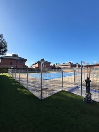 NEO Patrimonial ofrece, Chalet adosado reformado con patio privado en el Sector III, Getafe. Chalet adosado totalmente reformado, con 280 m2 construidos, distribuido en cuatro plantas, ubicado en una de las zonas residenciales más consolidadas y demandadas de Getafe - Sector III. Una vivienda amplia, luminosa y funcional, pensada para una vida familiar cómoda y sin renuncias. La vivienda se distribuye de la siguiente manera: Planta baja Hall-recibidor, salón-comedor independiente de generosas dimensiones, cocina amueblada con zona office y salida directa a patio privado, un despacho o dormitorio adicional y baño completo con ducha. Primera planta Cuatro dormitorios dobles con armarios empotrados. Dos baños completos: baño principal en suite con ducha y un segundo baño comunitario, también con ducha. Buhardilla diáfana Espacio muy luminoso gracias a ventanas a dos aguas y ventanas Velux, ideal como zona de trabajo, sala de juegos o dormitorios adicionales. Dispone de amplio almacenaje empotrado bajo cubierta. Planta sótano Garaje con puerta automatizada, zona de almacenaje y bricolaje con entrada de luz natural mediante ventanas exteriores, además de una estancia adicional perfecta como salón de juegos, gimnasio o trastero. Exterior y zonas comunes El patio privado, con acceso directo desde la cocina, es perfecto para comidas al aire libre, reuniones familiares o zona infantil. Calidades y equipamiento Calefacción individual por gas natural, carpintería exterior de aluminio con doble puente térmico y ventanas oscilobatientes, persianas eléctricas, ventanas Climalit, rejas de seguridad, suelos de parquet de roble, gres porcelánico en zonas húmedas y puertas interiores de madera. La vivienda incluye el uso de una espectacular piscina comunitaria semiolímpica, rodeada de amplias zonas verdes y arbolado, con club social y bar, un valor añadido poco habitual en la zona. Ubicación y comunicaciones Situado junto al Centro Comercial Getafe Sector 3 y a escasos mi