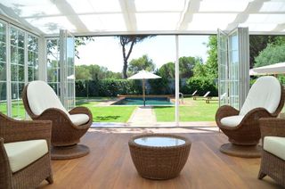 Es una gran casa independiente que se acaba de actualizar por completo, con calidades de lujo. La parcela es de 3.100m2, en una de las mejores zonas de Madrid, en la urbanización La Florida (salida 13 de la A6). Tiene 3 plantas: principal, primera y sótano. En planta principal, entramos por un enorme hall, con suelo de mármol, desde donde arranca la escalera de subida a la primera planta. A la izquierda, pasamos al salón, con salida a porche con cerramiento móvil, que tiene grandes ventanales al jardín. En el amplísimo salón, preciosa chimenea italiana del siglo XIX. Está comunicado con comedor y con un despacho, tiene una fantástica librería y ventanales, también al jardín. A la derecha del hall, otro fantástico despacho convertible en dormitorio. En estas ultimas zonas de recibo, el suelo es nuevo de madera de roble. Habitación segura con puerta acorazada con baño en suite, aseo de visitas, y gran cocina con zona de desayuno con bajada a planta sótano. Electrodomésticos nuevos de alta gama. En planta primera, con precioso techo abovedado, distribuidor al que dan 4 dormitorios, 2 de ellos en suite y los otros 2 compartiendo baño. Los dormitorios tienen terraza, sobre la entrada de la casa. Todos los dormitorios con fantásticos armarios nuevos hasta el techo, con doble altura para colgar. En planta sótano, con entrada independiente, dormitorio y baño de servicio, zona de lavado con gran mesa de trabajo, zona de estar, gran bodega y despensa. Grifería Hans-Grohe, Fontini y Nobili, lavabos de diseño hechos a medida, armarios vestidos, tiradores de bronce antiguos y originales, pintura lisa, suelos de roble y teca, gestor automatizado consumo eléctrico, ventanas de cristal blindado, alarma, sistema de vigilancia de video, tv satélite, piscina de agua salinizada y maquina de deposito y presión de agua son algunos detalles de la terminación de esta fantástica reforma. Servicio de jardinería, mantenimiento de zonas verdes y paisajismo, piscina y riego de jardín incluido