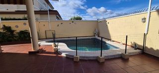 Amplia casa adosada con sótano, patio con piscina y 5 dormitorios en Mairena del Aljarafe Te presentamos esta magnífica casa adosada ubicada en una de las zonas más demandadas de Mairena del Aljarafe, un entorno tranquilo, familiar y rodeado de servicios. La vivienda destaca por su amplitud, su funcionalidad y por ofrecer estancias luminosas, múltiples espacios de convivencia y un fantástico patio con piscina ideal para disfrutar todo el año. Con 175 m² construidos y 150 m² de vivienda, esta casa se distribuye en sótano + dos plantas, ofreciendo comodidad, versatilidad y espacio para toda la familia. Sótano Un amplio espacio multifuncional que puede destinarse a: -Zona de garaje, a ala de ocio, como almacén o taller, o adecuarlo a tu propio gimnasio privado Planta principal En la primera planta encontramos: -Salón-comedor muy luminoso, con chimenea y salida directa a las escaleras que conectan con el exterior -Aseo -Cocina independiente -Salita/comedor adicional, perfecta como segundo espacio de reunión o zona de juegos, con acceso directo al patio trasero -Patio con piscina, ideal para disfrutar en familia, tomar el sol o celebrar reuniones al aire libre Segunda planta En esta planta se distribuye la zona de descanso: -4 dormitorios amplios y luminosos -2 baños completos -En total, la vivienda cuenta con 5 dormitorios, ofreciendo espacio para familias grandes o quienes necesiten zona de trabajo o despacho �️ Ubicación y servicios cercanos La vivienda se sitúa en una zona muy cómoda y valorada de Mairena del Aljarafe, rodeada de servicios y con una excelente calidad de vida. En los alrededores encontrarás: � Supermercados (Mercadona, Supermercado Más, Jamón...) � Colegios e institutos a pocos minutos � Parques y zonas verdes ideales para pasear o practicar deporte � Instalaciones deportivas y clubes sociales �️ Restaurantes, cafeterías y comercios de todo tipo � Proximidad al metro de Ciudad Expo y rápidas conexiones con Sevilla � Centros de salud y farm