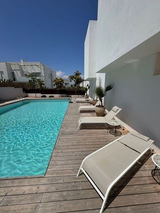 Disponible para Julio y Agosto a 9.500 €/mes, con posibilidad hasta Septiembre según petición. Contacte por email por favor, no podemos atenderle por teléfono.  Te presentamos esta moderna y acogedora casa adosada de tres plantas situada en una exclusiva y tranquila urbanización de nueva construcción en Ses Païsses, muy cerca de todos los servicios y excelentemente conectada con San Antonio e Ibiza ciudad. Con una superficie total de 151 m² distribuidos entre interior y exteriores, esta vivienda ofrece un estilo de vida cómodo, funcional y elegante. Desde el primer momento destaca por su decoración cuidada al detalle, con un gusto exquisito que aporta calidez y distinción a cada rincón. La vivienda se distribuye en tres plantas y cuenta con 3 dormitorios, 2 baños completos y un aseo. En la planta baja encontramos un luminoso salón con cocina americana totalmente equipada, ideal para compartir momentos en familia o con amigos. Un aseo de cortesía aporta comodidad en el día a día, mientras que en el exterior, una generosa terraza de 24 m², con pared de piedra natural, invita al relax con su zona chillout, barbacoa y ambiente mediterráneo. En la primera planta se ubican tres habitaciones. La principal, amplia y luminosa, cuenta con una cómoda cama de 180 cm y amplio y moderno baño en suite. Las otras dos habitaciones, con camas de 150 cm, están perfectamente optimizadas, ya que disponen de prácticas mesas de trabajo abatibles que permiten adaptar el espacio según las necesidades. Todas las estancias ofrecen armarios y una decoración pensada para el confort. La joya de la casa se encuentra en la segunda planta: una espectacular azotea de 42 m² que alberga una piscina privada perfecta para refrescarse en los días calurosos de verano, disfrutar del sol ibicenco o relajarse contemplando las vistas abiertas de los alrededores. Este espacio permite también crear una segunda zona chillout o incluso instalar otra barbacoa si se desea. La casa se entrega completamente equipada