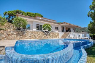 Lucas Fox presenta esta amplia y luminosa villa de estilo rústico situada en S´Agaró, en un entorno tranquilo, ideal para familias que buscan privacidad y confort cerca del mar. Se sitúa en una zona residencial exclusiva de S'Agaró, a pocos minutos a pie de las playas de Sa Conca y Sant Pol, por lo que ofrece un entorno tranquilo sin renunciar a la cercanía de los servicios esenciales. La propiedad dispone de un magnífico jardín con piscina privada, ideal para disfrutar del sol y de las vistas despejadas alrededor de la vivienda. La villa cuenta con ocho dormitorios y cuatro baños, de manera que resulta perfecta para acoger a toda la familia o recibir invitados con total comodidad. En la planta baja, se dispone un gran porche con vistas a la piscina y al jardín, con zona de barbacoa ideal para reuniones familiares. En el interior, se ofrece un salón-comedor con chimenea, la cocina equipada, dos dormitorios y un baño completo. En la primera planta, encontramos cuatro dormitorios dobles con bonitas vistas despejadas a las montañas y salida a una terraza, además de dos baños completos. En la planta altillo, se ofrecen otros dos grandes dormitorios y un baño completo. La villa está construida con un estilo rústico, con elementos tradicionales. Además, goza de espacios amplios y luminosos, para ofrecer un hogar familiar único en la Costa Brava. Su orientación permite aprovechar al máximo la luz natural y disfrutar de vistas bonitas a los alrededores. Una oportunidad excepcional de vivir en una villa familiar amplia, en una de las zonas más deseadas de S'Agaró, a pocos minutos de la playa. Póngase en contacto para más información.