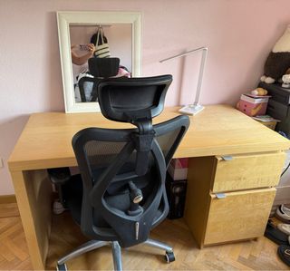 Conjunto de escritorio y silla ergonómica Todo se entrega en perfecto estado, lo vendo porque mi etapa estudiantil ha culminado 😅 Habría que venir a recogerlo, se entrega escritorio desarmado (la silla cabe fácil en el coche).