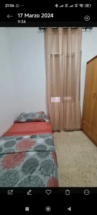 Se alquila habitación individual en piso compartido, ideal para estudiantes o profesionales. ✨ Características: - Cama de matrimonio, armario - Luz natural y ambiente tranquilo - Acceso a zonas compartidacocina equipada, baño, lavadora, terraza