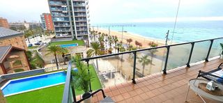 PISO EN PRIMERA LÍNEA DE MAR CON PISCINA COMUNITARIA EN VENTA EN EL PORT, BADALONA Presentamos esta gran oportunidad de ser propietario de un espectacular piso en primera línea de mar, junto al paseo marítimo y el puerto deportivo de Badalona, con licencia turística de hogar compartido. Su ubicación privilegiada y sus características lo convierten en una excelente opción tanto para disfrutar como residencia como para inversión, ofreciendo una rentabilidad atractiva. La vivienda dispone de 1 salón-comedor amplio, proporcionando un espacio cómodo y luminoso para el día a día. Su cocina equipada, grande e independiente garantiza funcionalidad y comodidad. Además, cuenta con 3 habitaciones dobles, todas exteriores con ventana, lo que permite una excelente entrada de luz natural. Dispone de 2 baños completos y de una gran terraza totalmente equipada, perfecta para disfrutar la mayor parte del año. Parking y trastero opcionales en la misma finca. Entre sus características adicionales, la propiedad ofrece zonas comunitarias con piscina, ideales para el ocio y el descanso. También cuenta con aire acondicionado, trastero y armarios empotrados, optimizando el almacenamiento. Su orientación este asegura luminosidad y vistas despejadas. Además, existe la opción de compra de un garaje (precio a consultar), brindando aún más comodidad. En Bartrina y Asociados disponemos de un completo equipo integrado por constructora, arquitectos, ingenieros y abogados para ofrecer un servicio de asesoramiento completo. Confía en nosotros para transformar esta propiedad en la inversión perfecta o en la casa que siempre has imaginado. ¡Contáctanos para más información o para agendar una visita!