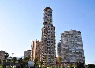 Este espectacular apartamento se encuentra en un rascacielos de 148 metros de altura, con una estructura singular que destaca por sus formas redondeadas y base cilíndrica. Con una superficie de 125 m², este inmueble ha sido diseñado para maximizar el espacio y la luminosidad, creando un ambiente acogedor y confortable. Al ingresar, te recibe un recibidor que da paso a un luminoso salón conectado a una de las tres terrazas, donde podrás disfrutar de impresionantes vistas a la bahía de Benidorm y las montañas circundantes. La cocina independiente cuenta con una amplia galería, ideal para tus momentos culinarios. El dormitorio principal ofrece un baño en suite y acceso a una terraza privada, mientras que el segundo dormitorio doble también tiene su propia terraza, perfecto para disfrutar del aire fresco. Un tercer dormitorio comparte un baño completo, brindando comodidad para toda la familia. Este apartamento está equipado con aire acondicionado por conductos en todos los espacios y cuenta con una ubicación en una zona residencial tranquila y bien comunicada. Además, es apto para personas con movilidad reducida, asegurando que todos puedan disfrutar de este maravilloso hogar. La urbanización ofrece un jardín remodelado, zona infantil, pista de tenis y una piscina interior climatizada, perfecta para relajarse y disfrutar del tiempo libre. Incluye trastero y plaza de parking subterránea, lo que añade aún más valor a esta increíble propiedad. ¡No pierdas la oportunidad de vivir en un lugar tan especial!