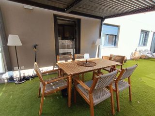 Gilmar pone a su disposición este excelente piso de nueva construcción en Sanchinarro. 176 m2 construidos y 50m2 de jardin privado. Piso my luminoso. El piso se compone de tres habitaciones, dos baños, un amplio salón y cocina con tendedero. El salón es amplio, espacio para zona de comedor y zona de sofás. Tiene salida directa al jardín. El jardín es amplio y tiene varios ambientes. Cuenta con un techo de obra y zona de solarium. Orienración sur. Da a la zona de dentro de la urbanización. La habitación principal cuenta con baño ensuite con ducha. Tiene un vestidor con gran capacidad. Las vistas dan al jardín, entra sol directo y tiene mucha luz. Las otras dos habitaciones comparten baño con bañera. Tienen armarios empotrados. La cocina cuenta con todos los electrodomésticos de última generación, también hay espacio para mesa. El tendedero tiene lavadora y secadora. Dos plazas de garaje incluidas en el precio. No hay trastero. La urbanización cuenta con pista de pádel, gimnasio, sala de reuniones, zonas verdes, piscina de verano y seguridad 24 horas. Zona de columpios. Muy buena ubicación, cerca del colegio St George y muy cerca de El Encinar de los Reyes. Disponible ya.