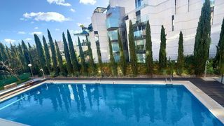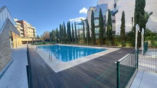 Se alquila magnífico piso súper luminoso e impecable en finca con piscina, jardín, plaza de garaje de acceso directo y trastero. Distribución: Hall, salón comedor, cocina con zona de office y puerta de servicio. Cocina con todos los electrodomésticos: Nevera Congelador, Vitrocerámica, Campana extractora, Horno, Microondas y Lavadora. Terraza tendedero. Dormitorio principal en suite con cuarto de baño con ventana, dos lavabos y bañera de hidromasaje. Dos dormitorios que comparten un baño. El inmueble tiene vistas al jardín y da a una calle sin salida con lo cual la intimidad y el silencio están garantizados. Calefacción por suelo radiante individual con la caldera en la terraza tendedero. Aire acondicionado por conductos con termostato en cada habitación. Persianas eléctricas. Garaje (Una plaza) y Trastero Condiciones: 1 mes de fianza 3 meses de depósito Estará disponible a partir del 10 de enero del 2026.