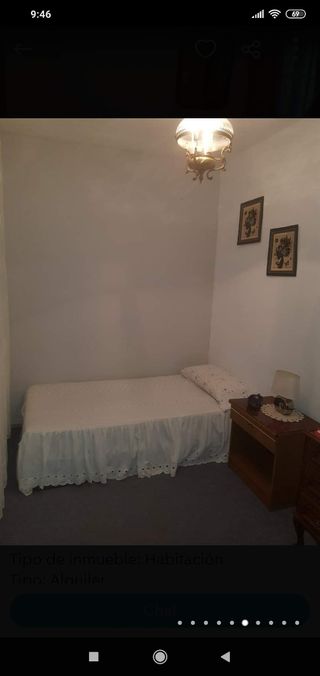 Habitación individual en alquiler. Es acogedora y dispone de cama individual, escritorio y silla. Ideal para estudiantes o profesionales. - Cama sencilla con colcha a cuadros. - Escritorio con estantes. - Silla de madera. se alquila habitación con baño compartido con una persona SOLO mayores de 45 años y hombre con trabajo estable, envío fotos tras primera llamada o contacto en el piso vivimos 2 hombres 58 y 62 años
