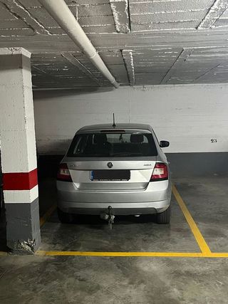 Alquilo plaza de garaje amplia y cómoda. - Situada en sótano. - Fácil acceso y maniobrabilidad. - Paredes pintadas en tonos rojos y blancos.
