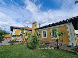 Le presentamos este impresionante chalet adosado de más de 175 m2 construidos en una sola planta, que destaca por su excelente estado de conservación, su cuidada distribución y su perfecta combinación entre comodidad, luminosidad y amplitud. Una vivienda ideal tanto como residencia habitual como para disfrutar de largas estancias vacacionales, en un entorno tranquilo y bien comunicado. Se distribuye de manera muy funcional las distintas estancias. La cocina, completamente independiente, ofrece un gran espacio de trabajo y almacenamiento, con mobiliario de calidad y zona para comedor diario, perfecta para disfrutar de comidas familiares. El salón-comedor es amplio, luminoso y acogedor, con espacio suficiente para diferenciar la zona de estar y la de comedor, y acceso directo al exterior, lo que proporciona una conexión fluida con la terraza y el jardín, creando un ambiente ideal para disfrutar tanto en invierno como en verano. La vivienda dispone de cuatro dormitorios de generosas dimensiones. El dormitorio principal cuenta con baño en suite, mientras que un segundo baño completo da servicio al resto de las habitaciones. Todas las estancias cuentan con armarios empotrados y grandes ventanales que garantizan una excelente iluminación natural durante todo el día. Equipada con calefacción de gasóleo, la casa ofrece confort y eficiencia durante todo el año. Además, dispone de un garaje cerrado de 40 m2 con espacio para varios vehículos y zona de almacenamiento, así como una trastera independiente, ideal para mantener todo en orden. En el exterior, la propiedad ofrece un entorno verdaderamente privilegiado. La amplia terraza invita a disfrutar de comidas al aire libre, barbacoas o momentos de relax. El gran jardín privado que rodea la vivienda ofrece múltiples posibilidades de disfrute, y alberga una espectacular piscina de 11 x 6 metros, con profundidades de 2,40 m y 1,50 m, perfecta para refrescarse, practicar natación o relajarse durante los meses más cálidos. La