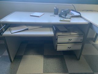 Mesa de oficina con cajones y bandeja