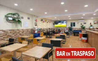 Sports bar en pleno funcionamiento en Igualada, con clientela fija y ambiente consolidado. Local de 140 m², alquiler 650 €/mes y traspaso 45.000 €. Pantalla gigante, billar con ingresos netos, máquinas recreativas, terraza autorizada y sin vecinos encima (libertad de horarios y eventos). Instalaciones nuevas, aire acondicionado, licencias en vigor y sistema de seguridad. Totalmente accesible (rampa y baño adaptado). Incluye espacio anexo independiente ideal para take away, dark kitchen u otro negocio. Ingresos demostrables y gran potencial de crecimiento. Ideal para explotar o invertir.