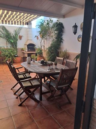 REF. 2085 Vivienda con cochera en venta La Carlota. Adosada de dos plantas, con sótano y buhardilla. Casa distribuida en recibidor de entrada, amplio salón, baño, cocina - comedor con salida a bonito patio de 45m2; primera planta con tres dormitorios grandes y dos baños; buhardilla con habitación, baño y terraza. Tiene sótano y semisótano con cocina campera de 40m2, baño y chimenea. Excelentes calidades de la vivienda: paredes de perlita, suelos de mármol, cierres de doble acristalamiento, aire acondicionado en todas las estancias, armarios empotrados. Zona Residencial y comercial en La Carlota. INMOBILIARIA CARLOS III LA CARLOTA. Los honorarios de la agencia inmobiliaria no están incluidos en el precio de compraventa. Los gastos de la compraventa (Notaria, Registro e Impuestos) no están incluidos.
