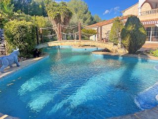 Esta villa turística está situada en una parcela privada de 4.000 m² y es mayoritariamente de una sola planta, lo que proporciona un excelente nivel de comodidad y accesibilidad. Las principales estancias y dormitorios se distribuyen en la planta baja, contando únicamente con un dormitorio adicional en la planta superior, al que se accede mediante una pequeña escalera y que actualmente ha sido reconvertido a partir de un antiguo espacio diáfano. Además, la propiedad dispone de dos anexos independientes: un apartamento de invitados totalmente autónomo con entrada propia y una casa de invitados, lo que ofrece una flexibilidad excepcional para alojar grandes grupos o gestionar varios alquileres de forma simultánea. Asimismo, existe un espacio adicional bajo la edificación principal que puede adaptarse como otro apartamento, aunque actualmente no dispone de cocina. La propiedad goza de orientación sureste, lo que garantiza una excelente entrada de luz natural durante todo el día. En la parcela hay abundante espacio de aparcamiento. La villa fue construida originalmente en 1984 y ha sido objeto de diversas reformas a lo largo de los años, encontrándose en buen estado de conservación. Las zonas exteriores incluyen una piscina con jacuzzi, área de barbacoa y zonas chill-out, además de instalaciones de ocio únicas como una pista de tenis privada y un skate park, elementos que diferencian claramente la propiedad dentro del mercado de alquiler vacacional. La vivienda se vende completamente amueblada y equipada, con aire acondicionado instalado, y representa un activo "llave en mano" con rentabilidad demostrada. El impuesto anual sobre bienes inmuebles (IBI) asciende a 546 €, sin gastos de comunidad, lo que hace que los costes de mantenimiento sean especialmente atractivos. Polop es una localidad con una ubicación privilegiada y una atractiva combinación de auténtica cultura española y vistas impresionantes a la campiña, las montañas y el mar Mediterráneo. La propiedad se