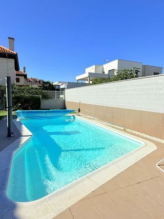 Chalet Adosado en León Capital Chalet adosado en venta León Capital | Urbanización con piscina | Paseo de Salamanca Disfrute la privacidad de un chalet con la comodidad y ubicación de vivir en el centro urbano de León. Su nuevo hogar junto al río Bernesga. Ubicación y Estilo de Vida: Este exclusivo chalet adosado en venta en León capital se encuentra en un de las zona demandada: el final del Paseo de Salamanca, junto al cauce del río Bernesga y a un paso del complejo de San Juan de Dios. También muy próximo al centro comercial Espacio León. Urbanización Don Sancho. La propiedad forma parte de una urbanización privada y cerrada, destacando por su alto nivel de mantenimiento y su piscina comunitaria. Esta ubicación estratégica permite disfrutar de la tranquilidad de un entorno residencial, con acceso rápido y caminando a todos los servicios del Casco Urbano de León. Distribución y Diseño: El diseño de la vivienda está enfocado en la funcionalidad y el confort para una vida familiar o profesional de alto nivel. Planta Baja: Hall de entrada con armarios empotrados integrados. Cocina completamente amueblada y equipada. Amplio salón con acceso directo al jardín privado. Baño de cortesía para el servicio de la planta. Primer Nivel (Zona de Descanso): Dormitorio principal con armario vestidor y baño en suite. Dos dormitorios adicionales, ambos equipados con armarios empotrados. Baño completo para el servicio de la planta. Bajocubierta (Espacio Versátil):´ Distribuido eficientemente en un despacho profesional y un cuarto dormitorio completo. Baño adicional con plato de ducha. Planta Sótano (Servicio y Almacenamiento): Cuarto de lavandería y planchado. Habitación adicional utilizable como trastero o almacén. Bodega. Despensa con arcón frigorífico. Características Técnicas y Acabados: La calidad de construcción y los acabados garantizan eficiencia energética y un mantenimiento mínimo: Características Carpintería Exterior Ventanas de PVC con rotura de puente térmi