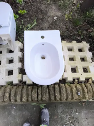 Lavabo y inodoro usado en exposición
