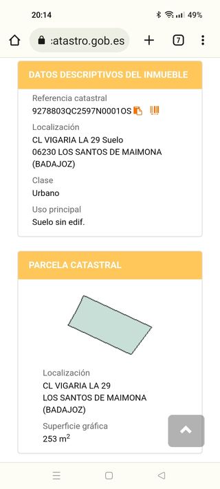 Se vende parcela urbana en Los santos de Maimona (zona "El Mármol"), C/La Vigaria n29, zona en crecimiento residencial. Este terreno cuenta con 250m² y una fachada de 10.72m, ideal para la construcción de chalets, casas, o para la creación de negocios. La parcela está totalmente urbanizada y dispone de conexión a agua, electricidad y red de alcantarillado público. Adjuntamos fotos del terreno y su entorno para que pueda apreciarse su potencial y ubicación. Si estás interesado, tenemos disponible el estudio de coordenadas para una mejor referencia. ¡No pierdas esta oportunidad!
