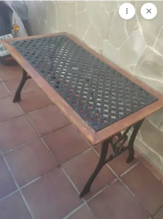 Mesa de jardín forja madera.dos bancos de 125 cm