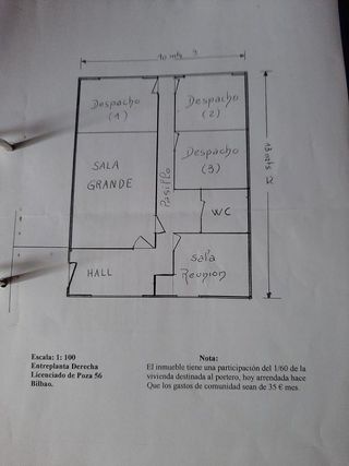 ¡Oportunidad única en Bilbao! Se vende una amplia oficina de 124 m² en la Calle Licenciado Pozas, ideal para quienes buscan un espacio versátil y luminoso. Este inmueble, situado interior a un tranquilo patio de manzana, ofrece un ambiente sereno que favorece la productividad. Con su orientación sur, disfrutarás de abundante luz natural durante todo el día, creando un espacio acogedor y agradable. La oficina se encuentra actualmente distribuida en varios despachos, lo que permite múltiples opciones de reconfiguración según las necesidades de tu negocio. Además, existe la posibilidad de obtener habitabilidad para convertirla en vivienda, lo que la convierte en una inversión atractiva para el futuro. El edificio cuenta con ascensor sin barreras arquitectónicas, facilitando el acceso a todos. Su ubicación es inmejorable, con fácil acceso a la parada de metro y una amplia oferta de autobuses en las cercanías. No dejes pasar esta oportunidad de adquirir un espacio que combina funcionalidad y comodidad en una de las mejores zonas de Bilbao. ¡Contáctanos para más información y ven a descubrir tu nuevo espacio!