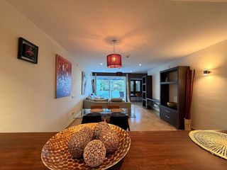 Maravilloso piso en la urbanización de park suite Incosol Río Real (Costa del Sol). Se trata de un amplísimo apartamento de 100 m², muy luminoso durante todo el día. El piso cuenta con una cocina funcional, un salón muy grande con espacio adicional ideal para utilizar como oficina o zona de trabajo, y una preciosa terraza acondicionada con varios ambientes: un salón exterior, un comedor y una zona para hamacas, perfecta para relajarse. En el otro extremo de la vivienda se encuentra un gran dormitorio equipado con dos camas de matrimonio y un amplio espacio para almacenamiento de ropa y de cualquier cosa mas. Desde el dormitorio se accede a un baño en suite, de gran tamaño y equipado con bañera. La vivienda ofrece una sensación de paz y tranquilidad, ideal para quienes buscan comodidad y amplitud. Además, dispone de parking cubierto y cerrado, tiene seguridad. No cuenta con piscina de momento.