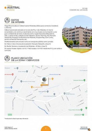 Llave en mano. Fantásticos locales a la venta en Célere Austral, situados en la zona del PAU 4 en Móstoles. Un barrio consolidado y en continuo crecimiento con muy buena comunicación. Locales aptos para actividad de oficina, comercio, sector educativo (academia, escuela infantil), sector salud (centro pilates, peluqueria y estética.. . ) Perfectamente comunicado tanto en transporte público como privado. En Metro: A dos minutos de la estación Manuela Malasaña, Línea 12 En Renfe: Cercano a la estación de Móstoles - El Soto, Línea 12 En coche: Acceso rápido a la A-5. Y fácil acceso a la M-50 mediante R-5 y con salida a la M-506. Actualmente disponemos de varios locales: Local 2 con una superficie construida de 164m² y precio 365.000€+ IVA Local 3 con una superficie construida de 119m² y precio 285.000€+ IVA Local 4 con una superficie construida de 190m² y precio 395.000€ + IVA. ¡Infórmate!