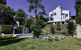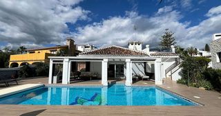 Encantadora villa ubicada en Nagüeles, a pocos minutos del centro de Marbella, la playa y Puerto Banús, en plena Milla de Oro. La vivienda principal, distribuida en una planta, cuenta con un amplio salón, cocina totalmente reformada, tres dormitorios con baños en suite y un aseo de cortesía. Desde todas las estancias se accede a terraza cubierta y de ahí al jardín y a la piscina privada. La parcela, de 1.000 m², está rodeada de árboles y vegetación consolidada, amplio porche con zona de barbacoa y tambien ofrece espacio para aparcar dos coches dentro de la propiedad.