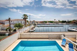 Elegante propiedad al lado de un puerto en Empuriabrava Esta elegante casa de alta calidad, distribuida en una sola planta, se encuentra junto a un puerto de Empuriabrava, en una parcela de 656 m². La vivienda se compone de un luminoso salón-comedor con cocina abierta, moderna y equipada con electrodomésticos de alta gama. Dispone de cinco dormitorios, dos de ellos en suite, tres baños y un aseo de cortesía situado en la entrada. El exterior está diseñado para disfrutar de unas vacaciones familiares junto a la piscina climatizada de 4x8 metros, que cuenta con sistema de corriente, función de olas, limpieza automática e iluminación LED ambiental. También dispone de conexión para jacuzzi, sistema de sonido exterior, pista de petanca y una cocina de verano totalmente equipada. Además, cuenta con un amplio garaje y trastero. Extras: placas solares, calefacción por suelo radiante, aire acondicionado, ventanas de doble acristalamiento con mosquiteras, sistema de alarma, pista de petanca, garaje y trastero.