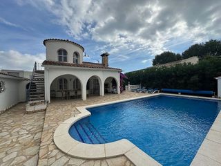 Casa independiente en venta en Empuriabrava. Espaciosa, luminosa y con piscina Se vende magnífica casa independiente en una zona muy tranquila de Empuriabrava. Ideal para quienes buscan confort, espacio y privacidad en un entorno relajado. La vivienda cuenta con 259 m² construidos sobre una parcela de 400 m², distribuidos en dos plantas, lo que la convierte en una opción perfecta tanto como residencia habitual como para segunda vivienda. En la planta baja se encuentra un amplio salón-comedor orientado al oeste, con mucha luz natural y vistas agradables, una cocina abierta integrada al espacio, dos dormitorios de buen tamaño y un baño completo. La primera planta dispone de una cocina independiente, un salón espacioso, tres dormitorios adicionales y un segundo baño. Ideal para familias numerosas o para quienes deseen contar con una zona de invitados independiente. El exterior ofrece un jardín privado con zona cubierta, piscina-jacuzzi, y una cocina-barbacoa completamente equipada, perfecta para disfrutar del clima mediterráneo y organizar encuentros con familia o amigos. Equipada con aire acondicionado y calefacción eléctrica a gasoil, la casa garantiza confort durante todo el año. Además, dispone de armarios empotrados, trastero, garaje y puerta corredera motorizada con mando a distancia. Una oportunidad única de adquirir una vivienda completa, bien situada y con todas las comodidades. ¡Contáctanos para más información o concertar una visita! Certificado Energético: N0SX6YC4Y La agencia de las familias exigentes.