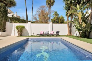 Elegante villa de estilo clásico de 4 dormitorios con comodidades modernas en Nagüeles, Milla de Oro de Marbella. Impresionante villa en alquiler en Nagüeles, Milla de Oro, Marbella. Con 4 dormitorios, 4 baños y un despacho, esta espaciosa villa ofrece el lugar perfecto para vivir. Disfrute del lujo de una piscina privada, garaje y jardín, lo que garantiza total privacidad y relajación. Con 320 m² construidos y enclavada en una generosa parcela de 1200 m², esta propiedad ofrece amplio espacio para que usted y sus invitados se relajen. La villa está completamente amueblada y cuenta con comodidades como una acogedora chimenea, elegantes suelos de mármol y una cocina bien equipada. Disfrute de la comodidad de la calefacción por suelo radiante en toda la casa y un refrescante sistema de refrigeración por suelo radiante. La villa cuenta con una terraza cubierta y una terraza descubierta, que le permiten disfrutar de las hermosas vistas al jardín y a la piscina. Recientemente renovada, esta propiedad irradia un encanto contemporáneo a la vez que conserva su encanto atemporal. Situada cerca de tiendas, del centro de la ciudad y del puerto deportivo, además de estar cerca de las escuelas, esta villa ofrece comodidad y accesibilidad.