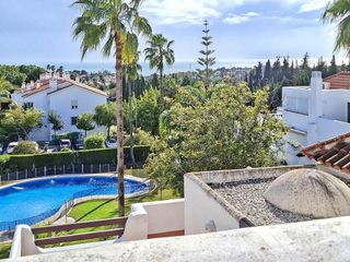 Encantadora casa adosada reformada en Ancon Sierra - Lomas del Puente Romano, Marbella Ubicada en una de las zonas más exclusivas, tranquilas y seguras de Marbella, esta elegante casa adosada reformada se encuentra en la prestigiosa urbanización privada Ancon Sierra, en Lomas del Puente Romano, a solo unos minutos de Puente Romano, Marbella Club y Forum, con excelente conexión a las principales vías y todos los servicios. La urbanización destaca por su ambiente familiar y exclusivo, con vigilancia 24 horas, cuidados jardines comunitarios, servicio de mantenimiento, dos piscinas, restaurante dentro del complejo y un entorno especialmente tranquilo, ideal para familias con niños. La vivienda cuenta con 175 m² construidos, distribuidos en dos plantas, sobre una parcela privada de 212 m², rodeada de vegetación y con varias zonas exteriores que invitan al descanso y a la vida al aire libre. En el interior, la propiedad ofrece 3 dormitorios, 2 baños completos en suite y un aseo de cortesía. Dos de los dormitorios se encuentran en la planta superior, ambos con baño en suite, mientras que el tercer dormitorio, de menor tamaño, se sitúa en la planta baja, ideal como dormitorio de invitados, despacho o sala polivalente. El salón-comedor es amplio y luminoso, con acceso directo a las terrazas privadas, perfectas para disfrutar del clima de la Costa del Sol en un entorno verde y relajante. La vivienda dispone de dos amplias terrazas, además de balcón, que aportan diferentes espacios exteriores para el disfrute diario. La cocina se encuentra totalmente equipada, y la vivienda se entrega amueblada, lista para entrar a vivir. Está equipada con aire acondicionado y calefacción por radiadores, garantizando confort durante todo el año. Además, cuenta con armarios empotrados y plaza de garaje incluida en el precio. Con orientación sur y este, la casa disfruta de una excelente luminosidad natural durante todo el día. Una propiedad ideal para quienes buscan privacidad, seguridad