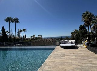Excepcional Villa de Lujo en Alquiler de Larga Temporada junto a Sierra Blanca - Milla de Oro de Marbella Ubicada en una de las zonas residenciales más prestigiosas, lindando con Sierra Blanca y situada sobre la emblemática Milla de Oro de Marbella, esta extraordinaria villa ofrece una oportunidad única para disfrutar de una vida de lujo a largo plazo en un entorno privado, tranquilo y altamente exclusivo. Rodeada de elegantes villas y naturaleza, y a tan solo minutos del centro de Marbella, las playas, colegios internacionales y reconocidos restaurantes, su ubicación es inmejorable. Asentada sobre una parcela elevada, la propiedad disfruta de impresionantes vistas panorámicas al mar Mediterráneo y a las montañas, características propias de la zona de Sierra Blanca. Con 1.157 m² construidos sobre una parcela de 1.391 m², la villa destaca por sus amplias dimensiones, confort refinado y una distribución ideal para una residencia familiar de larga duración. La vivienda cuenta con siete amplios dormitorios y seis baños, distribuidos de forma inteligente para garantizar privacidad y funcionalidad. Las zonas de estar, luminosas y espaciosas, se abren a terrazas y áreas exteriores, creando una perfecta conexión entre interior y exterior. Los suelos de mármol, los techos altos y los acabados elegantes aportan una sensación de sofisticación atemporal en toda la propiedad. Pensada tanto para la vida familiar como para el entretenimiento, la villa dispone de varios salones, tres cocinas totalmente equipadas y un apartamento independiente con entrada privada, ideal para invitados o personal. Las zonas exteriores incluyen jardines cuidadosamente diseñados, una piscina privada y amplias terrazas concebidas para disfrutar del clima de Marbella durante todo el año. Entre sus elementos más destacados se encuentra una pérgola bioclimática deslizante, que permite regular luz y ventilación según las necesidades. Además, la propiedad ofrece sala de cine privada, gimnasio, sala de j