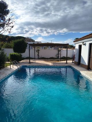 Chalet en venta en Chiclana de la Frontera. La vivienda cuenta con una superficie construida de 186m2, dispone de 3 dormitorios, dos de los dormitorios con un baño completo, salón con puerta de acceso al exterior y a la azotea, cocina amueblada, y baño completo con placa de ducha. Se asienta sobre una parcela segregada de 5.000m2, en el que encontraremos un trastero de unos 32m2, garaje de 36m2, piscina (actualmente tapada), invernadero, árboles frutales.. . ideal para disfrutar del campo y la tranquilidad. Se ubica en la zona del Marquesado, cerca de la venta de los Cazadores, con fácil acceso a la salida de Chiclana y diversos servicios a su alrededor. ¡Venga a visitarla sin compromiso! Informamos a nuestros clientes, que los gastos de Notaría, Gestoría, Impuestos y gestiones de la compra no están incluidos en el precio de venta. Según Decreto 218/2005, del 11 de Octubre, disponemos del Documento Informativo Abreviado de la vivienda y de Seguro de Caución.