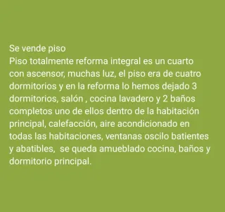 � Piso reformado zona El Salvador/ Goya ✨ ¡Rebaja de precio! 220.000 € ✨ Vivienda totalmente reformada, luminosa y bien distribuida, ideal para entrar a vivir. � Características principales: •86 m² •4ª planta •3 habitaciones •2 baños •Ascensor •Posibilidad de garaje en alquiler ℹ️ Información legal: El precio de venta no incluye los honorarios de intermediación inmobiliaria (2% + IVA, mínimo 3.000 € + IVA), ni los gastos derivados de la compraventa (Notaría, Registro e ITP). � ¡Oportunidad única a un precio inmejorable! [IW].
