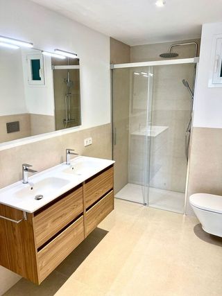 Moderno piso a estrenar con vistas al mar en Son Espanyolet-Este piso, situado en la agradable zona de Son Espanyolet, se encuentra actualmente en proceso de reforma integral para convertirse en un hogar perfecto, moderno y lleno de estilo. Se han seleccionado cuidadosamente los mejores materiales para ofrecer un acabado de alta calidad. Desde el balcón se puede apreciar vistas panorámicas al mar, a la catedral y a la ciudad. Situado en la quinta planta del edificio con ascensor, también hay una gran terraza comunitaria con magníficas vistas. Con aproximadamente 100 m² incluyendo el balcón, la propiedad tiene una distribución óptima con un soleado salón-comedor, cocina abierta y isla, tres dormitorios dobles y dos baños, uno de ellos en suite. También hay una cuarto individual ideal para utilizar como espacio de trabajo. Si desea disfrutar de una vivienda elegante y totalmente renovada, con una excelente ubicación en un agradable barrio del centro de Palma, este apartamento es para usted. Finalización prevista en Febrero 2026.