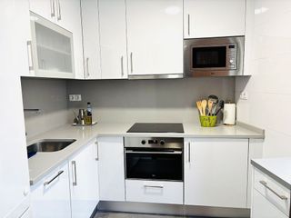 SE VENDE espectacular piso totalmente reformado y completamente amueblado para entrar a vivir. La vivienda no tiene nada de pasillo y está muy bien distribuida con un salón-cocina tipo americano, 1 habitación y 1 baño. Además, dispone de un amplio trastero en la planta semisótano con acceso directo desde el ascensor. El espacio abierto del salón-cocina tipo americano es muy práctico. Esta dependencia se ha cuidado con exquisitos detalles, con una espectacular encimera en la cocina, en color blanco con vetas en tonos marrones. Los muebles de la cocina están muy bien distribuidos y con gran cantidad de espacio para almacenaje y cuenta con un gran armario escobero muy práctico para guardar los utensilios de limpieza. Además, está montada con todos los electrodomésticos; lavadora, secadora, nevera, frigorífico, microondas incrustado, lavavajillas de media carga, placa de inducción y horno. En el espacio central de la cocina dispone de una mesa alta en madera con taburetes, perfecta para disfrutar de tus comidas y también para usarla como encimera auxiliar. El salón es exterior y está montado con un gran sofá-cama muy práctico por si te vienen invitados. Para la entrada al dormitorio dispone de una puerta corredera en madera que lo hace muy práctico y moderno además de ganar espacio. A su entrada tiene montado un gran armario empotrado y se encuentra amueblada con cama de 150 cm con canapé. Esta dependencia tiene mezclas de pintura y papel con un impresionante mural integrado en toda la pared frontal del cabecero de la cama que hacen que su contraste sea espectacular y realzando aún más su decoración. Junto a este dormitorio, nos encontramos el baño instalado con bañera equipada con mampara. Calidades: Suelo cerámico efecto madera. Ventanas de doble climalit lacadas en color gris oscuro con rejillas de seguridad. Puerta de entrada blindada. Videoportero. Preinstalación de A.A. Lámpara ventilador colocado en el dormitorio. Acumulador eléctrico para el agua caliente. Calef