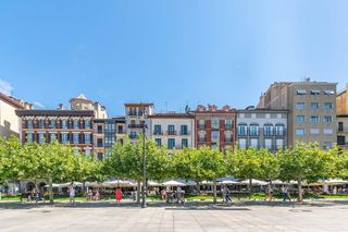 Vive la historia de Pamplona desde tu balcón en Plaza del Castillo. ¿Imaginas despertarte cada día con las vistas más emblemáticas de Pamplona? Esta vivienda te ofrece la posibilidad de vivir -o invertir- en un inmueble singular, en plena Plaza del Castillo, con balcones también a la calle Estafeta, el recorrido más famoso de los encierros de San Fermín. Con 142 m2 útiles en una tercera altura, distribuidos en 2 fincas independientes materialmente unidas, este piso no solo es un hogar, sino también un gran activo inmobiliario: amplitud, versatilidad y un valor asegurado por su ubicación única. La vivienda se encuentra en estado impecable, lista para entrar a vivir, con una distribución que sorprende por la amplitud de sus estancias. Además, cuenta con carpintería exterior renovada, que garantiza un excelente aislamiento acústico y la tranquilidad de un hogar sereno en pleno centro. Distribución: •Gran salón lleno de luz natural. •Tres dormitorios espaciosos, dos con baño en suite. •Un tercer baño adicional. •Amplia cocina independiente. •Estancia adicional acondicionada como lavadero o zona de planchado pero con posibles usos tales como trastero o despensa Los seis balcones son un auténtico privilegio: •Tres con orientación oeste a Plaza del Castillo, con panorámicas abiertas y espectaculares. •Tres a la calle Estafeta, desde los que se vive en primera línea la esencia de Pamplona y los Sanfermines. Calidades: puertas de roble, suelos en perfecto estado y un edificio con amplio ascensor, que aporta comodidad en su tercera altura. Una vivienda que combina historia, exclusividad y proyección: espacios amplios, vistas incomparables y estado impecable, lista para entrar a vivir desde el primer día, con múltiples posibilidades de distribución según tus necesidades. No dejes pasar la oportunidad de vivir o invertir en una de las ubicaciones más emblemáticas de Pamplona. Contacta con nosotros hoy mismo y descubre en persona todo el encanto, amplitud y vistas incom