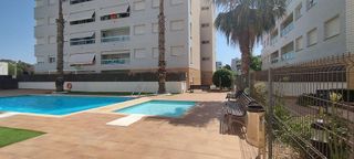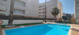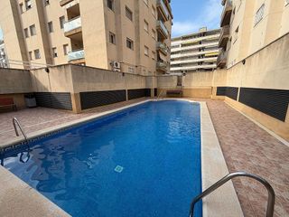 On Llar Immobiliaria. Piso exterior de 84 m2 situado en planta baja, con 2 habitaciones y 2 baños. Dispone además de plaza de parking y trastero, ambos situados en la planta sótano del edificio. Finca con ascensor. Zona comunitaria con piscina. A pocos metros de la linea de mar.