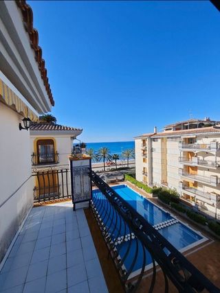 FABULÓS ÀTIC DÚPLEX A PRIMERA LÍNIA DE PLATJA, AMB VISTES AL MAR El que fa única i exclusiva aquesta propietat és la ubicació, la gran terrassa privada i discreta a l'àtic, amb vistes al mar, amb instal·lació de llum i aigua. Tens el privilegi de poder posar-hi jacuzzi, barbacoa, solàrium o espai de chill out. El pis, situat a la quarta planta (àtic), de 120m2 (entre pis i terrasses), consta de: 1a planta: 3 habitacions, dues d'elles exteriors; dos banys complets; una sala-menjador amb sortida a una àmplia terrassa amb vistes al mar i a la zona comunitària; cuina equipada; i una galeria-safareig. 2a planta: gran terrassa privada de 30m2 amb vistes al mar. S'hi accedeix a través de l'escala comunitària. El pis es troba en bon estat, a punt per anar-hi a viure. El preu inclou una plaça d'aparcament de fàcil accés, i molt segura, situada dins el pàrquing del mateix edifici, amb entrada directe per l'ascensor a la planta de la teva vivenda. El complex consta de gran zona comunitària, molt ben cuidada, amb piscina, solàrium i zona de jardins. Pots gaudir del luxe d'accedir directament des de la teva llar a la platja i a la piscina. La ubicació és un altre dels grans atractius d'aquesta propietat: en una zona tranquil·la i de qualitat, a Mas Mel, Calafell. Està molt ben comunicada: a 10 minuts a peu s'accedeix al Port nàutic de Segur de Calafell, a la zona comercial i d'oci, al centre del municipi i al transport públic. L'edifici va ser construït l'any 1989. Les despeses de comunitat són de 60e/mes, i l'IBI de 400e/any. No dubtis a contactar amb nosaltres i en parlem!