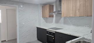 Piso totalmente reformado con 3 habitaciones, 2 baños, salón, 2 patios, cocina, trastero y garaje.