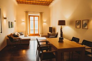 En el corazón del barrio histórico de Sa Gerrería, en Palma, se encuentra la Casa Baul, un edificio del siglo XV. En 2022 se construyeron en ella cuatro apartamentos cuidadosamente modernizados, entre ellos este impresionante apartamento en la primera planta. Destaca por la armoniosa combinación de un diseño contemporáneo y sostenible con detalles tradicionales, como el arco románico, las ventanas góticas de la fachada y la piedra natural marés, típica de las Islas Baleares. La superficie habitable de 142 m² se distribuye en un amplio salón con balcón, una cocina abierta con comedor contiguo y otro balcón, dos dormitorios con baño propio (uno de ellos con vestidor adicional), un lavadero y un aseo de invitados. Entre las características especiales de esta propiedad de lujo se incluyen: entrada bien cuidada del edificio, calefacción por suelo radiante, ascensor, aire acondicionado central, domótica, parquet de roble macizo, sistema de descalcificación y ósmosis, doble acristalamiento y balcón francés. El apartamento y el edificio han sido construidos recientemente, siempre teniendo en cuenta la conservación del carácter original. El apartamento ofrece un diseño moderno y un confort de alta calidad, utilizando materiales de primera calidad y tecnología de vanguardia, como se puede ver en la domótica, la tecnología energética y el suministro de agua. Condiciones de alquiler: duración mínima/máxima del alquiler 11 meses (con posibilidad de prórroga previo acuerdo con los propietarios), fianza de 1 mes, pago por adelantado del alquiler de 11 meses, contratos de alquiler temporales, p. ej. , por motivos laborales, año sabático, excedencia, etc. Lavadora disponibles, los gastos de agua, electricidad y la tasa anual de basura corren a cargo del inquilino, para lo cual se cobra un pago mensual por adelantado (400 euros). No se admiten mascotas. Disponible de inmediato. [IW].