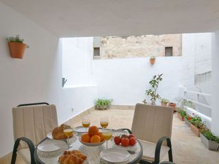 Apartamento con amplio balcón amueblado, situado en la zona de la Plaza del Mercat y la iglesia de San Nicolás, en pleno Casco Antiguo de Palma, próximo al mar y a la Catedral. Con una superficie construida de 54 m², la vivienda se distribuye en un dormitorio, un baño con ducha, cocina abierta tipo open plan, amueblada y equipada, y un salón-comedor con salida directa al balcón. Adicionalmente, dispone de un patio privativo. Forma parte de un edificio rehabilitado con buenas calidades, ascensor, videoportero e iluminación interior mediante sensores. Otras características: el apartamento se alquila sin muebles. Dispone de aire acondicionado frío-calor y suelos de gres. Incluye electrodomésticos, excepto lavadora. Los consumos de electricidad, agua y el impuesto de incineración corren a cargo del inquilino. La fianza es de dos mensualidades. Alquiler de larga temporada. No se aceptan mascotas.