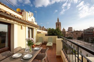 ALQUILER TEMPORAL - Duración máxima del alquiler 11 meses En el corazón de Valencia, la Plaza de la Reina, se ubica este acogedor apartamento de lujo para 4 personas, a 80 metros de la Catedral, con una terraza de 25 m2 con increíbles vistas de la plaza, donde podrás cenar disfrutando del atardecer, y en la zona de chill-out relajarte y disfrutar de las vistas de la Plaza, y también desde los dormitorios podrás disfrutar de unas vistas exclusivas de Santa Catalina. Dispone de 2 dormitorios, uno con una amplia cama de matrimonio para un placentero descanso y otro con dos confortables camas individuales, dos baños, y todos los acabados y materiales son de altísima calidad. Disfruta de la comodidad de estar en tu casa, ya que está totalmente equipado (puedes revisar en las características de todo lo que dispones), además de contar con toallas y ropa de cama. El apartamento se ubica en pleno centro histórico de Valencia, en la Plaza más bella de la ciudad, donde a pocos minutos andando encontrarás muchos de los atractivos turísticos de Valencia: la Catedral, la Plaza del Ayuntamiento, el Mercado Central, la Lonja de la Seda, la Estación del Norte, la Plaza Redonda, el Mercado de Tapineria, etc. En la propia Plaza de la Reina, encontrarás cafeterías, restaurantes con amplias terrazas al aire libre, heladerías, tiendas de artesanía y mucho comercio de barrio. Al estar en pleno centro, estarás perfectamente comunicado por transporte público, y en la propia Plaza dispondrás de servicio de autobús, taxi y autobús turístico. Se solicitará una garantía de 400€, la cual no se cargará ni se bloqueará en tu cuenta bancaria. Esta garantía funcionará como límite a modo de fianza en caso de incidentes en la propiedad. Se deberá firmar un contrato de arrendamiento previamente a la llegada al alojamiento. El consumo de electricidad está incluido hasta 70€ por mes, el exceso de consumo eléctrico correrá a cargo del inquilino. Existe un Parking público en la misma Plaza de la Rein