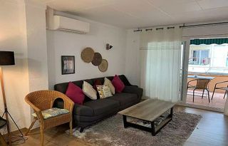 Apartamento céntrico a 2 minutos de la playa con terraza y piscina comunitaria Magnífico apartamento situado en pleno centro, en una ubicación privilegiada a tan solo dos minutos de la playa. La vivienda ofrece dos amplios dormitorios dobles, baño completo, y una cocina abierta totalmente equipada que se integra a la perfección con el luminoso salón-comedor, desde el cual se accede a una acogedora terraza con bonitas vistas. Equipado con aire acondicionado, el apartamento se entrega con plaza de parking incluida, un valor añadido en la zona. El complejo residencial cuenta con una extensa zona comunitaria con piscina, ideal para disfrutar al aire libre. La propiedad dispone de licencia turística, lo que la convierte en una excelente oportunidad tanto para uso propio como para inversión.